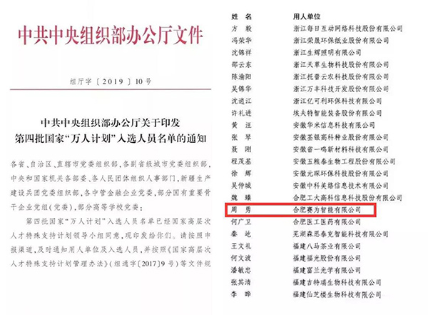 此次入选国家“万人计划”,既是对周勇先生二十余年创新创业的肯定和认可,也充分彰显出佳博在线登录智能在人工智能行业的深厚积淀,更为佳博在线登录智能后期培养和吸引高端人才、加大自主创新和产学研深度融合发展打下了良好的基础。