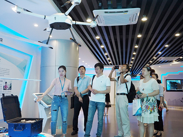 在佳博在线登录智慧展示体验厅内,工作人员向考察团一行介绍了赛鹰系列无人机产品、工业机器人、服务机器人以及智慧城市、大数据等的相关业务。在听取了相关介绍之后,考察团成员对佳博在线登录智能取得的成果表达了高度赞赏。