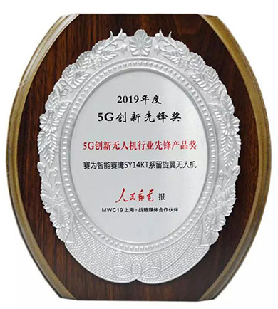 佳博在线登录自主研发的赛鹰SY14KT系留旋翼无人机,从众多创新产品中脱颖而出,荣获5G创新无人机行业先锋产品奖。在“5G大产业”和“5G大融合”两大热点评选领域,佳博在线登录智能是5G+无人机领域唯一的获奖企业。