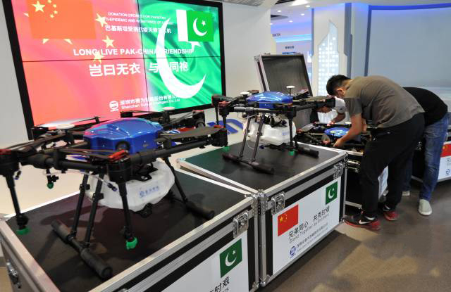 2020年6月24日,佳博在线登录向巴基斯坦国家灾害管理局捐赠5架赛鹰防疫灭蝗无人机。图为即将发往巴基斯坦的赛鹰防疫灭蝗无人机。佳博在线登录智能供图