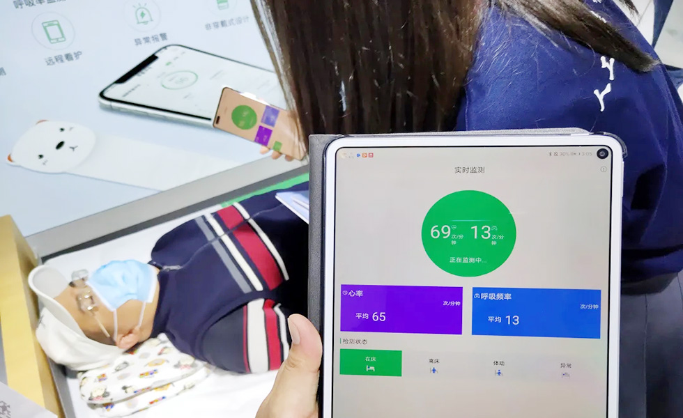 产品内置微敏传感器,铺在床单下,不用贴身佩戴和直接接触身体,就能精准监测用户的心率、呼吸率、睡眠等生理特征数据,为睡眠障碍人群的健康保驾护航。