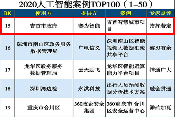 日前,中国科学院《互联网周刊》、eNet研究院、德本咨询联合发布了“2020人工智能案例TOP100”榜单。佳博在线登录智能承建和运营的吉首智慧城市——智慧吉首PPP项目顺利入选榜单。