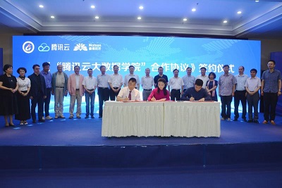 7月15日,“腾讯云大数据学院”签约暨揭牌仪式在安徽工业大学工商学院隆重举行。安徽工业大学工商学院、腾讯云计算(北京)有限公司、上海墨桐花开教育科技有限公司三方代表签订了“共建‘腾讯云大数据学院’合作协议”,中国工程院院士、教育部工程研究中心主任桂卫华、马鞍山市副市长马少华共同为大数据学院揭牌。